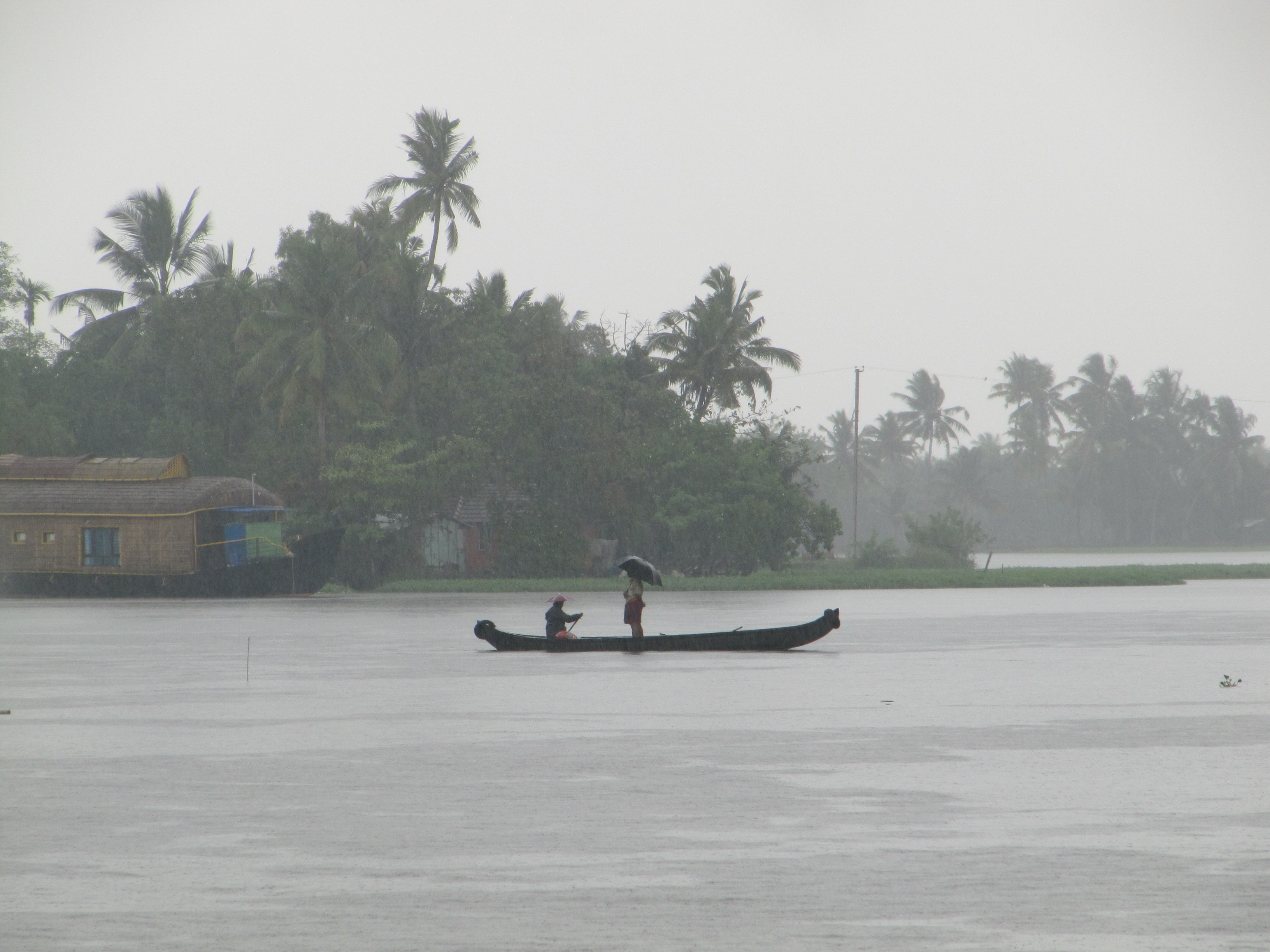 We heard about these cool houseboats where you can cruise overnight out on the Kerala backwaters from a town called Appeley, and we wanted to book one for the next day. The arrangements we tried to book online fell through, so we set out to town to book ourselves a houseboat. A short walk brought us to ‘town,’ if you could call it as such, this town was a few streets with about 3 restaurants and a handful of shops with no streetlights whatsoever, and on our walk over there it started pouring rain. We found a dark, dingy tourist office and were able to book a houseboat for the next day and a driver to take us around the area. He was to pick us up the next morning from the Vintage Inn.